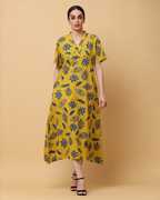 Black & Blah Blah Women A-line Yellow Below Knee Dress