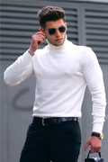 BLACK BLINK Solid Turtle Neck Party Men White Sweater