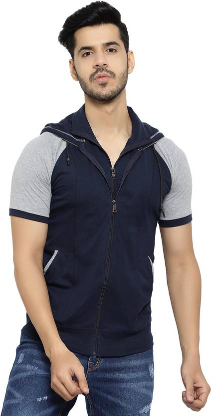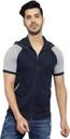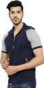 Black Collection Colorblock Men Hooded Neck Dark Blue, Grey T-Shirt