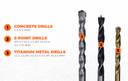 The five wide-tipped bits in this combination set make it easy to drill into masonry surfaces. They come in various sizes, namely 3 mm, 5 mm, 6 mm, 8 mm, and 10 mm, which allow you to conveniently drill into surfaces as per the requirements of the job. Also, the wide tip gives you enhanced support and a firm grip while drilling into surfaces.