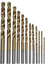This combination set contains up to 12 drilling bits of various sizes. They have been coated with titanium to enhance their rigidity and make them resistant to corrosion.