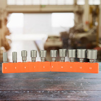 This combination set includes ten bolt and nut fasteners in the sizes of 2x5 mm and 6-13 mm. You can carry out various screwdriving and drilling operations on various surfaces with these fastening bits.
