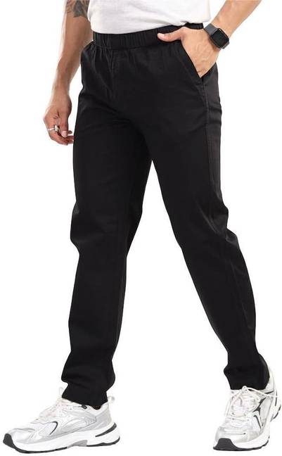 Men Solid Black Track Pants