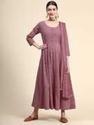 Georgette Chikankari Embroidery Gown Kurta With Naznin Dupatta