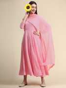 Georgette Chikankari Embroidery Gown Kurta With Dupatta Set