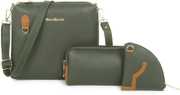 Green Women Sling Bag Solid Side Bag with pouch and card holder (Pack of 3)