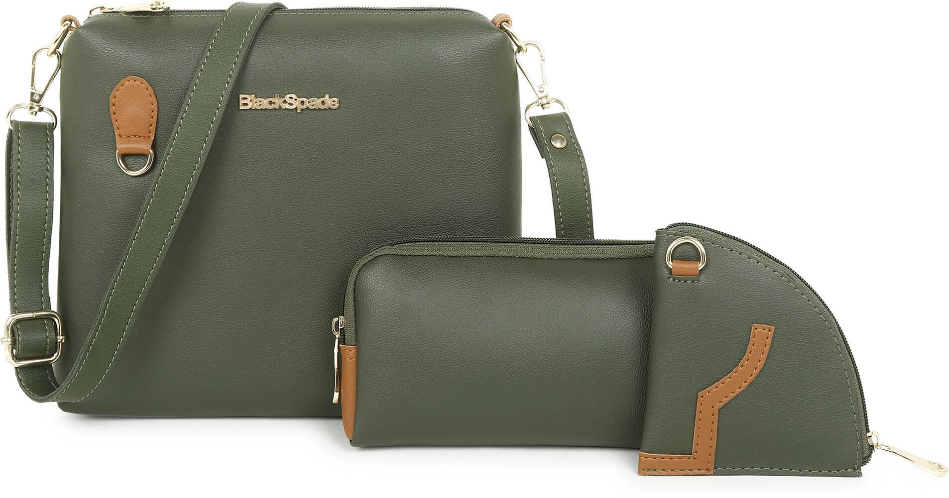 black spade Green Sling Bag Solid Side Bag with pouch and card holder (Pack of 3)