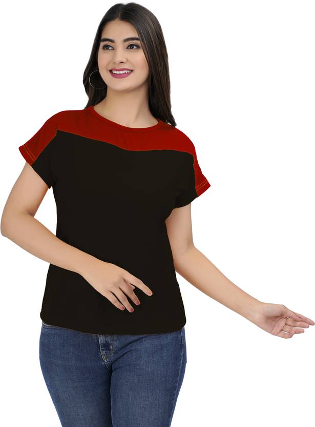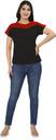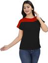 Women Colorblock Round Neck Cotton Blend Black T-Shirt