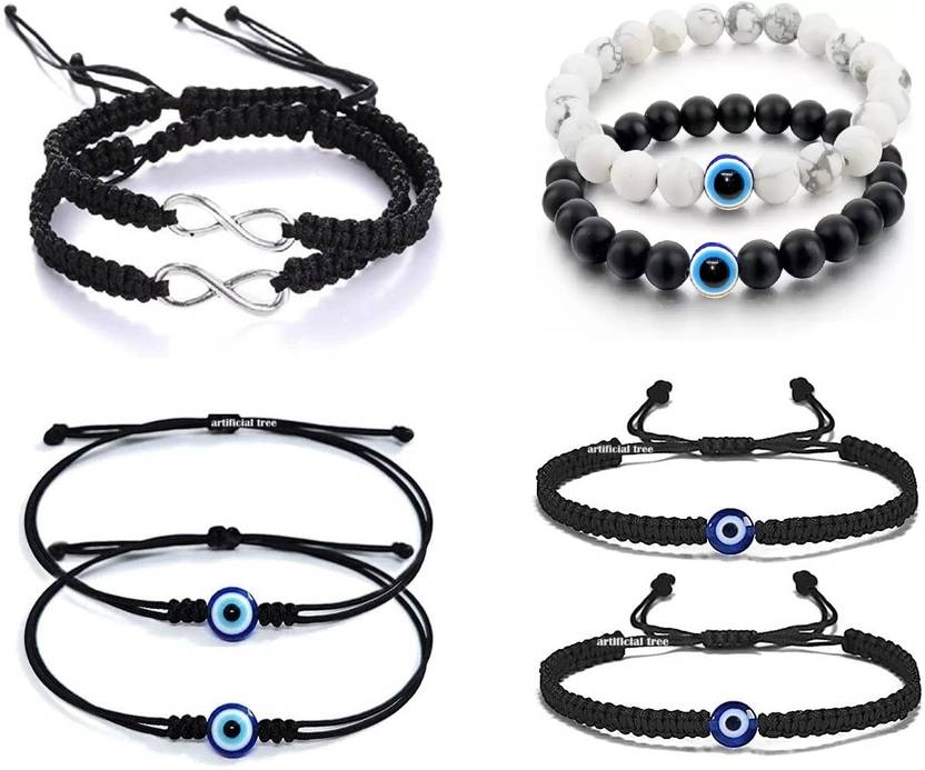 BLACK THREAD INFINITY BRACELET, BLACK WHITE MOTI BRACELET & EVIL EYE BRACELET | NAZAR BATTU | WOMEN, MEN & GIRLS 8 PIECE COMBO