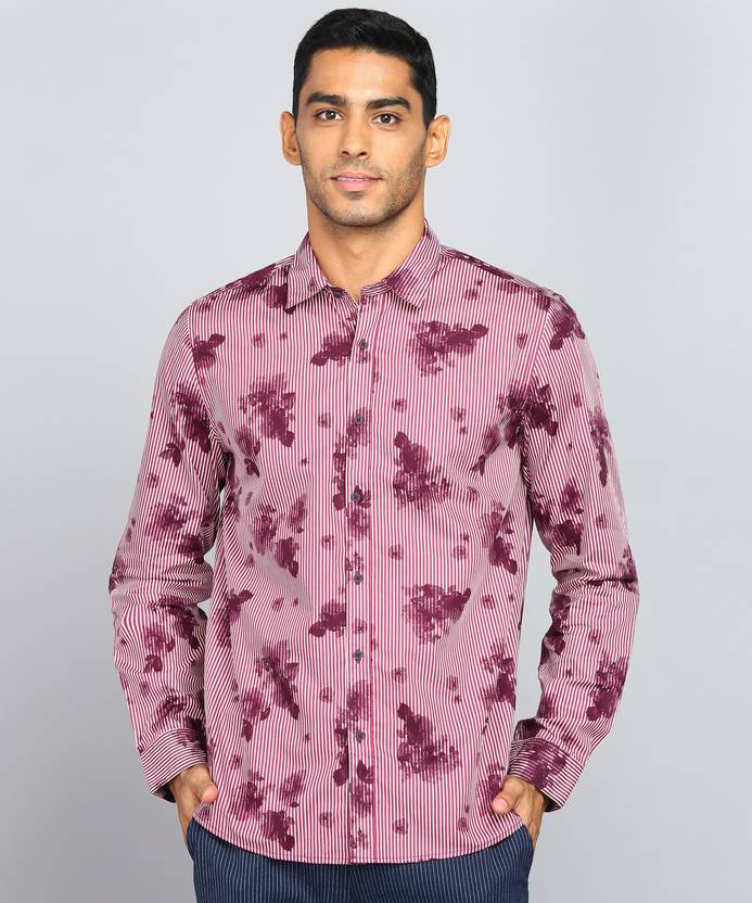 Blackberrys Men Printed Casual Maroon, Pink Shirt