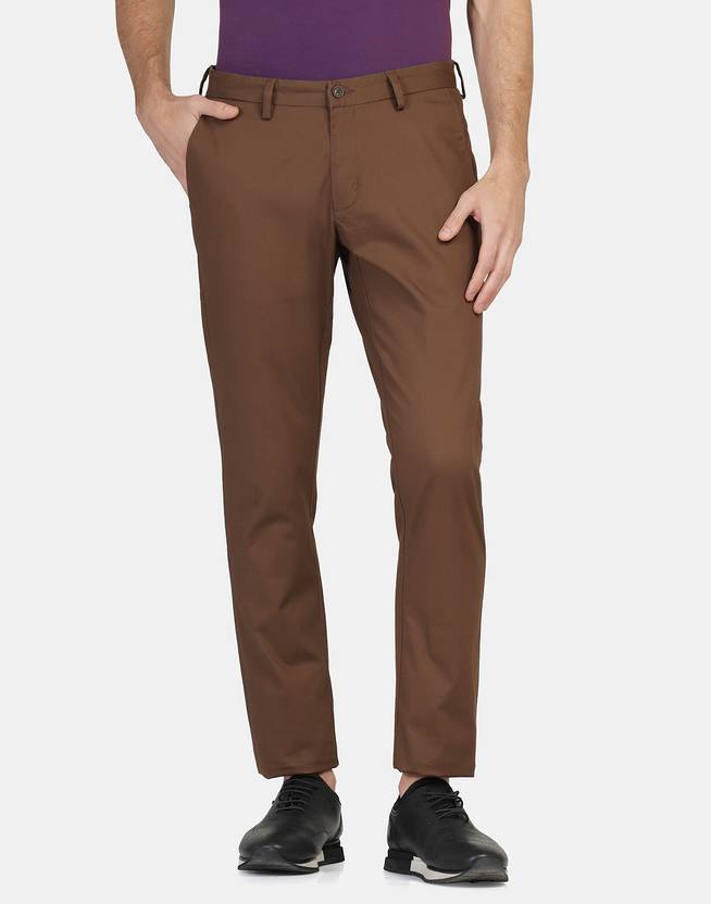 Elevate your style quotient at the office in this sleek pair of slim fit trousers. With a focus on sophistication, this statement brown trousers will stick around for another season at the very least. They're designed from a durable cotton fabric for ultimate comfort and finished with subtle details. It is a versatile, modern and effortless choice for your everyday workwear. Coordinate your trousers with a minimal patterned shirt to keep it interesting.