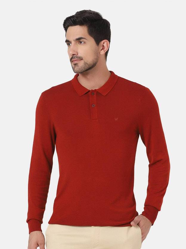 Blackberrys Solid Collared Neck Casual Men Orange Sweater