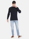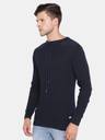 Blackberrys Striped Collared Neck Casual Men Dark Blue Sweater