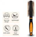 PERFECT POMPADOUR - style your hair the way you've always wanted to, add volume and pump to your quiff with the help of the our round styling brush. ON THE GO GROOMING - compact and slim design makes this round brush one of the best travel brushes for hair styling, slick it back, or poof it up, comb it over. The choice is yours. WET OR DRY - perfect to use as a blowdrying hair brush or just as a regular dry hair roll brush. Well balanced - Well balanced and flexible bristles Nylon bristles - Flexible and penetrate hair easily BALL TIP BRISTLES – The nylon tips of the bristles are round shaped to gently massage the scalp improving blood circulation. FLEXIBLE BRISTLES – It is specially crafted with soft and super flexible bristles for a pain-free hair curling and detangling experience. Heat resistant - Ball tipped bristles spaced for air circulation prevent pulling. Easy - Grabs hair excellent, Light weight and easy to use. Helps to create curls and add volume or lift. Great for home or professional use. Handle- Non-slip handle for the perfect grip.