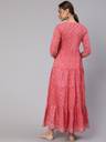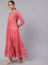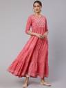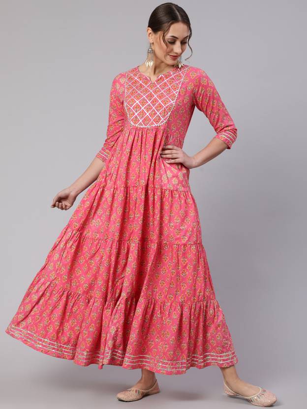 Women Printed Pure Cotton Flared Kurta (Pink)