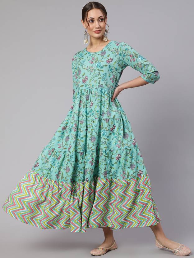 Women Printed Pure Cotton Flared Kurta (Multicolor)