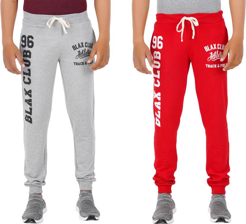 Pack of 2 Men Solid, Printed Grey, Red Track Pants