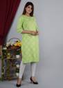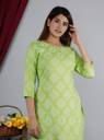 Blazin White Women Printed Cotton Rayon Straight Kurta (Green)