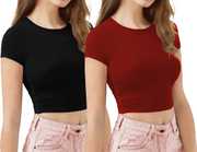 This crop top Designed with a comfortable and breathable fit, this top is perfect for everyday use. It features a crew neckline with short sleeves and a cropped hem for a sporty look. With its trendy design and supportive fit, you'll be ready to take on any challenge that comes your way.