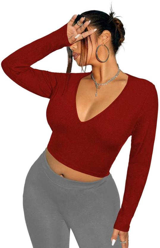 Stay comfortable through the winter in women's solid crop top. This regular wear solid color crop top with v neck is made up of high quality cotton material which is professionally produced to ensure long-lasting color giving you trendy look and comfortable feel. Free Authority fans will love this design which gives stylish look