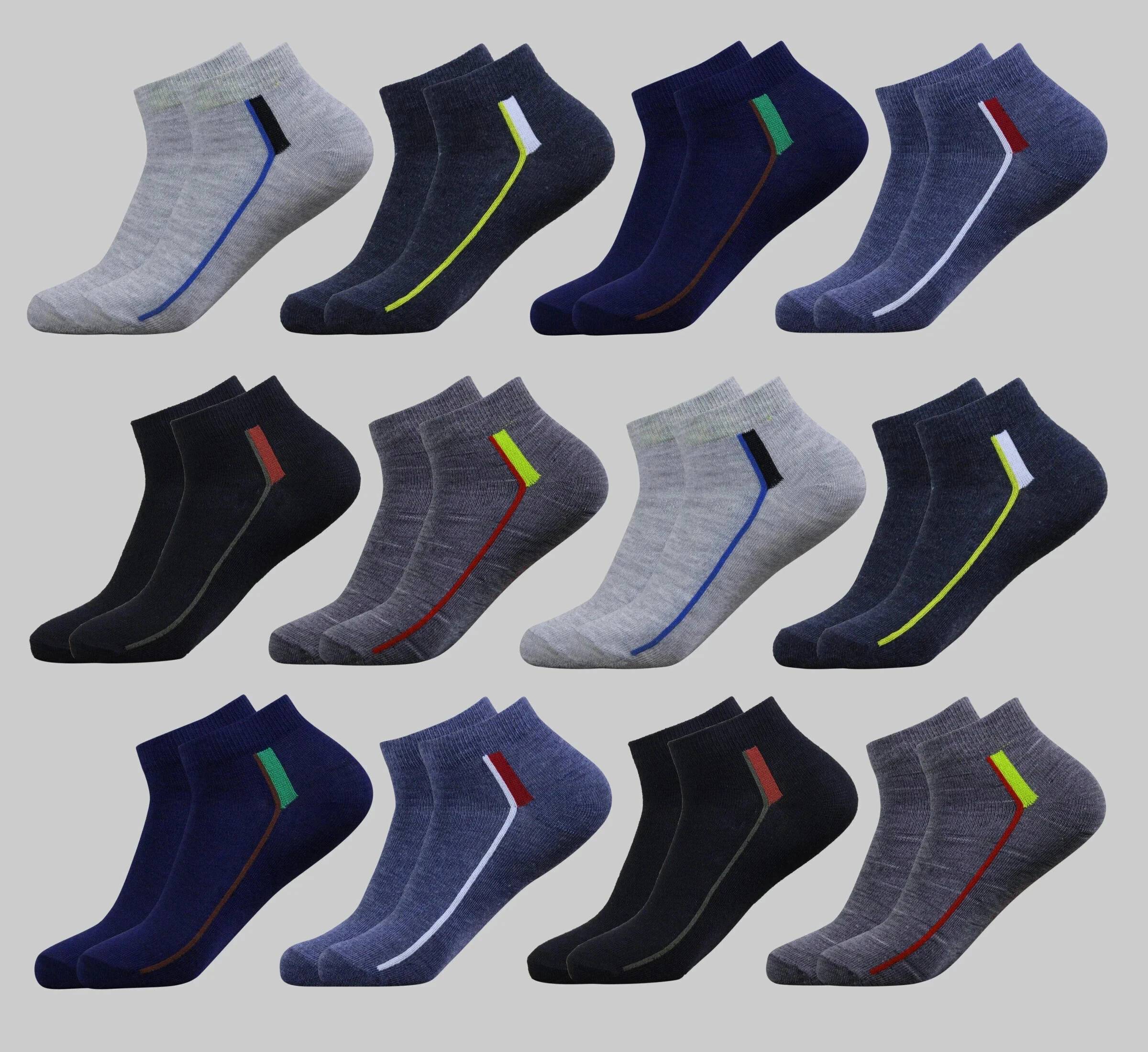 ANKLE SOCKS MULTI MEN WOMEN COTTON COMBO 12 PACK