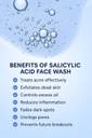 Due to its targeted approach, this face wash addresses acne by working to control excess oil, unclog pores, and reduce the appearance of breakouts. Its gentle exfoliating action helps remove dead skin cells that often contribute to blocked pores and uneven texture. Therefore, with consistent use, it can support clear skin and help reduce future breakouts while keeping the surface comfortable.