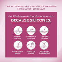 Boasting a silicone-free formulation, this shampoo allows your scalp to breathe after every wash. By avoiding silicones, it can help prevent grease, clogged follicles, and disrupted oil balance that interferes with nourishment. The absence of silicones also reduces scalp irritation and hair loss concerns. Due to this thoughtful design, hair receives hydration and care without residue, leaving strands feeling light and natural.