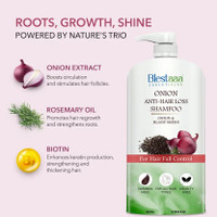 Infused with a trio of natural boosters, this shampoo can help support hair growth and strength. Onion extract encourages circulation and stimulates hair follicles for healthy roots. Rosemary oil works to strengthen roots and promote regrowth, while biotin contributes to keratin production, supporting hair thickening and resilience.