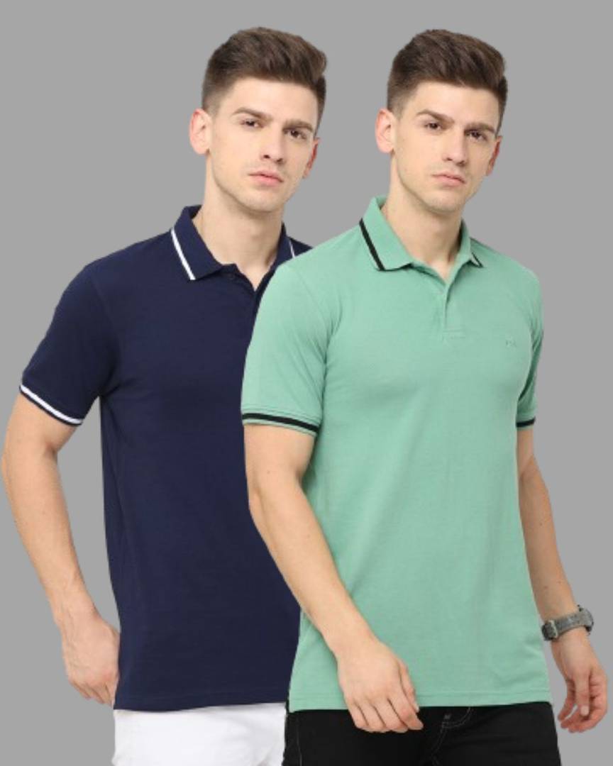 Pack of 2 Men Solid Polo Neck Pure Cotton Multicolor T-Shirt