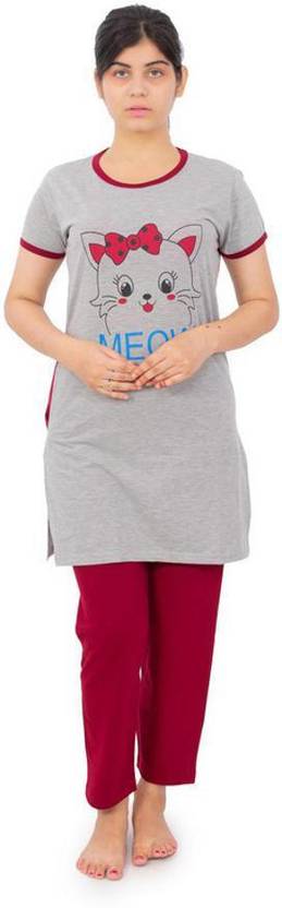 Bliss Bell Women Printed Grey Top & Pyjama Set