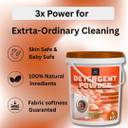 • Suitable for All Water Types: Performs well in both hard and soft water without leaving residue on clothes., Ideal for Daily Use: Perfect for everyday laundry loads including tough, greasy, and food stains., Fast Dissolving Formula: Dissolves quickly and completely in water no detergent lumps left behind., No Harmful Chemicals: Free from harsh bleaching agents, safe for skin and fabric.