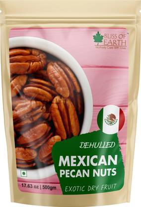 Bliss of Earth Mexican Pecan Nuts 500gm, Raw & Dehulled Pecan Halves, Flavonoids Rich Super Food Pecans (1 x 500 g)