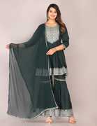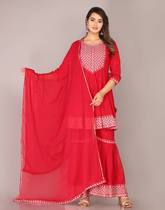 Women Viscose Rayon Ethnic Top Sharara Dupatta Set