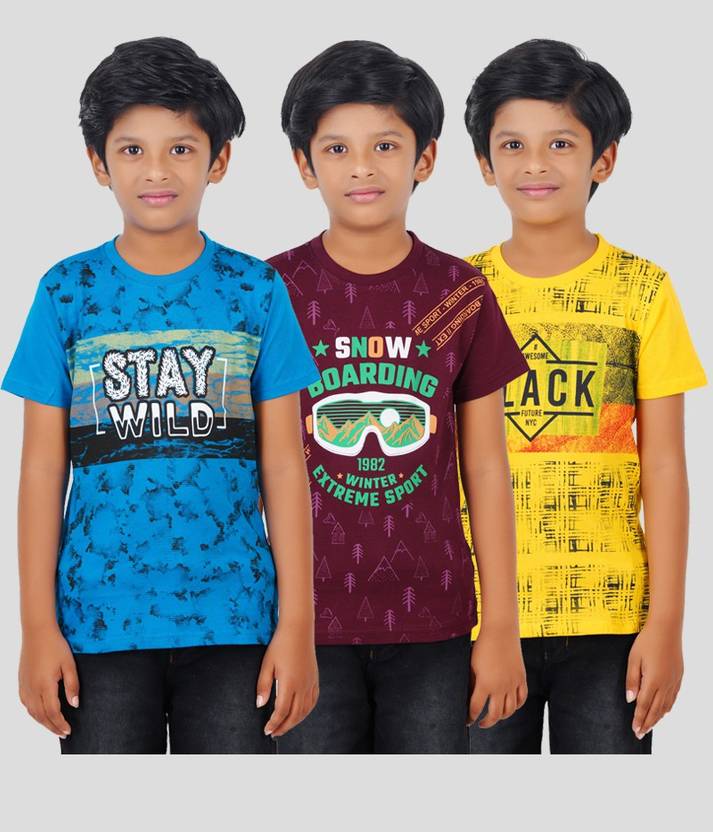 Bliss Park Boys Printed Pure Cotton Regular T Shirt (Multicolor, Pack of 3)