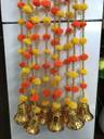BLISSBURRY Pom Pom door hanging torans/Wall hangings/Latkans for Decoration Approx 4 ft- Pack of 10 Strings with golden hanging bells Toran