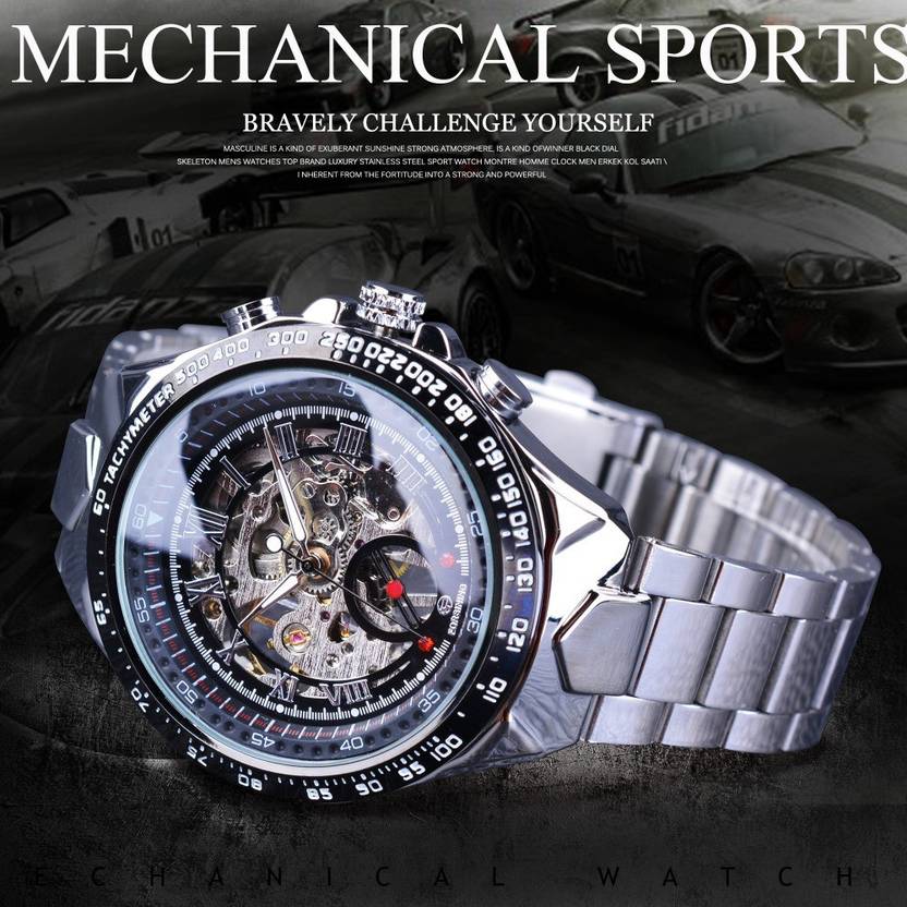 Self Winding See Through Back Mechanical Skeleton Sport Wrist Watch Men