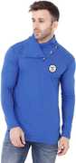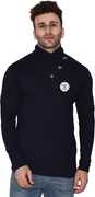 Men Solid High Neck Cotton Blend Black T-Shirt