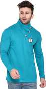 Men Solid High Neck Cotton Blend Red T-Shirt