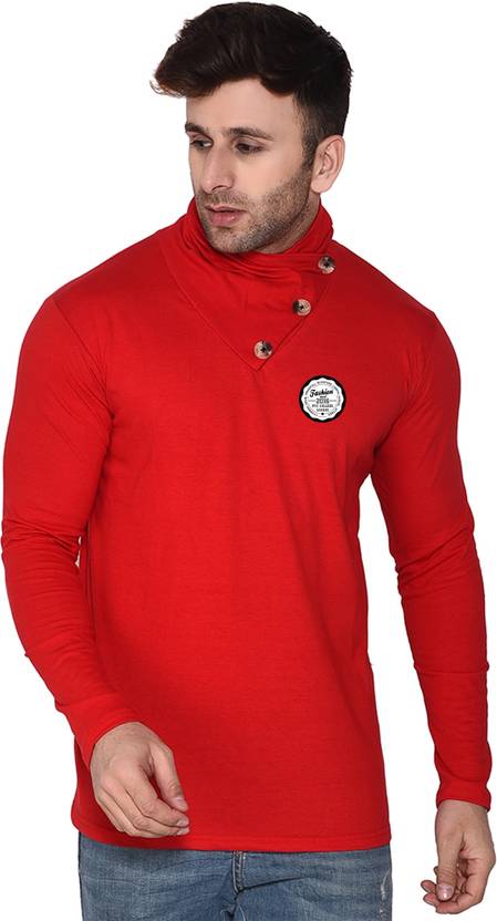 Blisstone Solid Men High Neck Red T-Shirt
