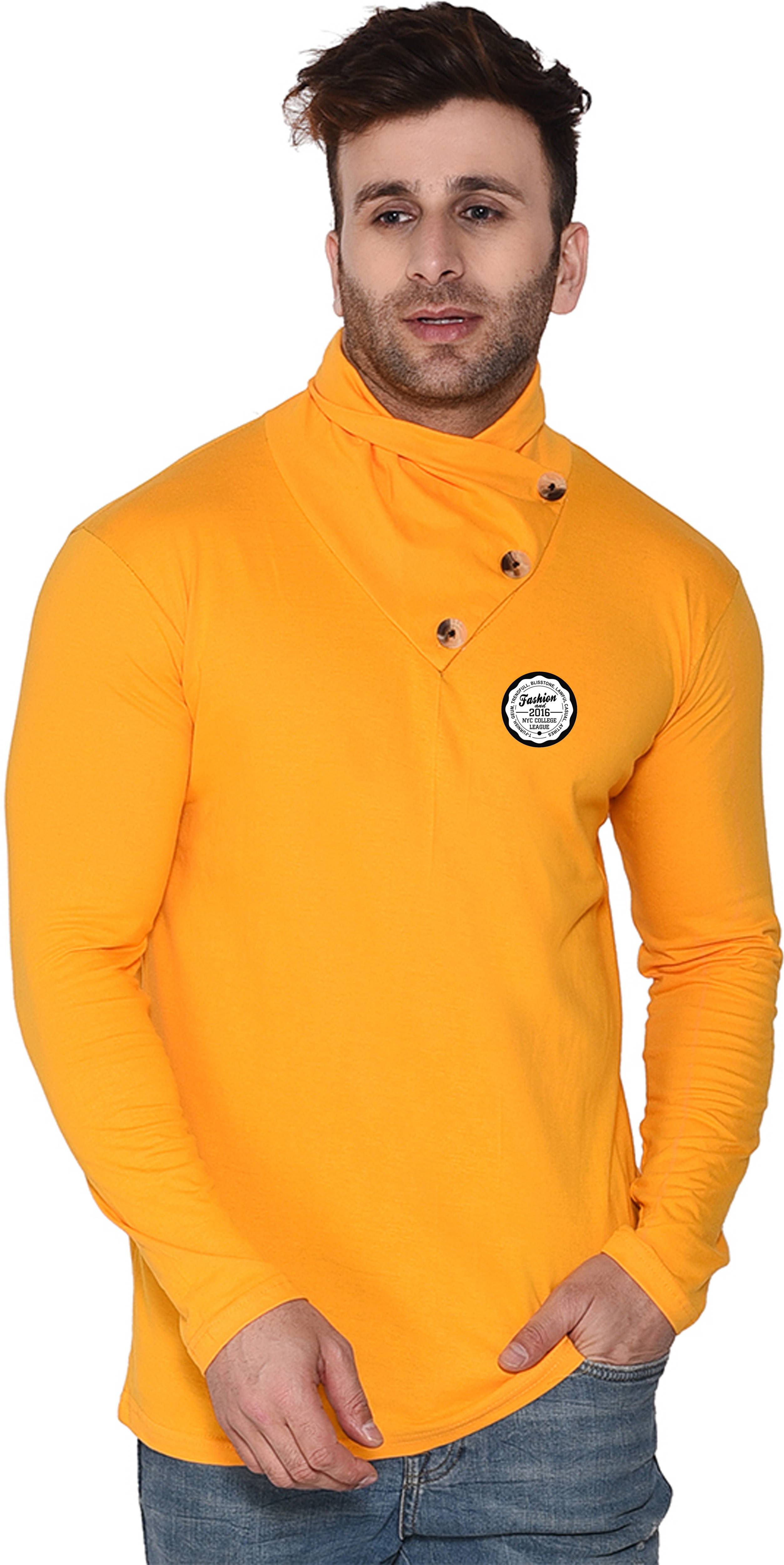 Blisstone Solid Men High Neck Yellow T-Shirt
