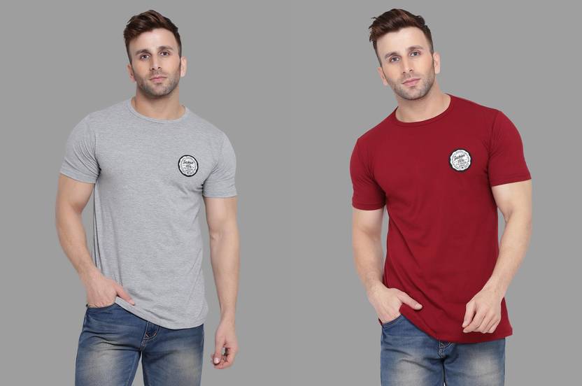 Blisstone Solid Men Round Neck Silver, Maroon T-Shirt