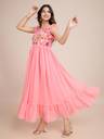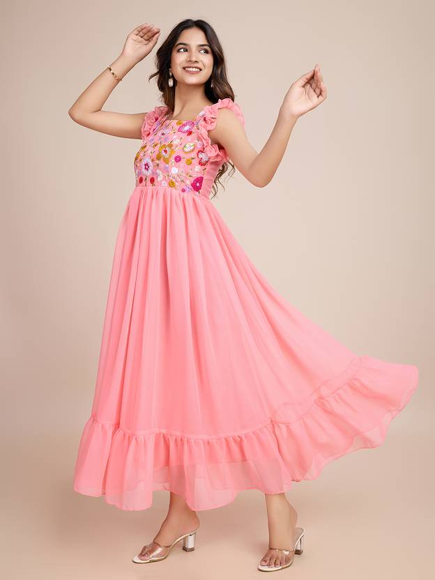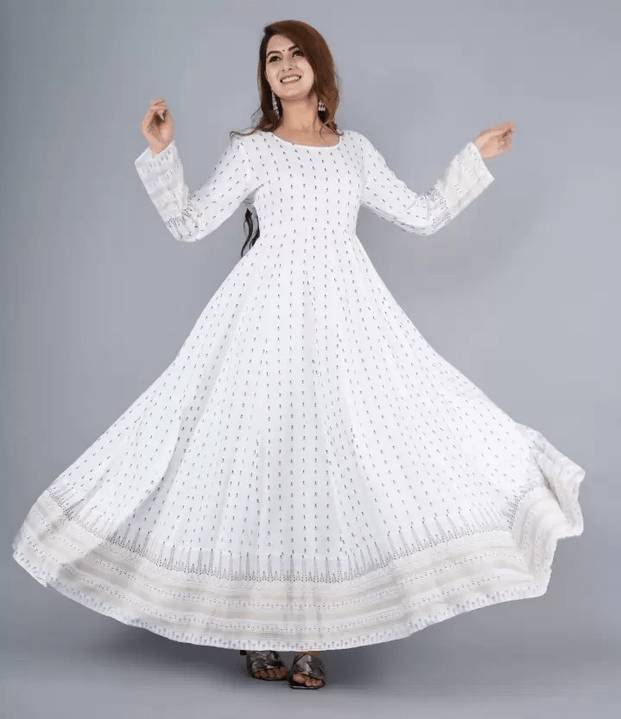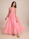 This elegant Anarkali gown from the brand BlissWeave, offered by Neerva Fashion, is crafted from lightweight and flowy georgette fabric, making it an ideal choice for weddings, festive celebrations, and parties. The gown features exquisite embroidery that enhances its luxurious appeal, adding a rich and intricate touch to its design. These sleeves provide a charming and sophisticated detail, ensuring you stand out on any special occasion. As a pre-stitched garment, it offers convenience and a perfect fit, allowing you to effortlessly achieve a refined and polished look. Whether you're attending a wedding, a festive event, or a glamorous party, this Anarkali gown combines traditional elegance with modern style, making it a versatile addition to your wardrobe.