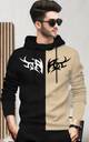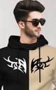 BLIVE Printed Men Hooded Neck Black, Beige T-Shirt