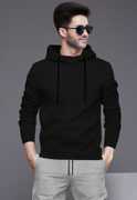 BLIVE Solid Men Hooded Neck Black T-Shirt