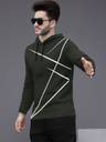 BLIVE Printed Men Hooded Neck Dark Green T-Shirt