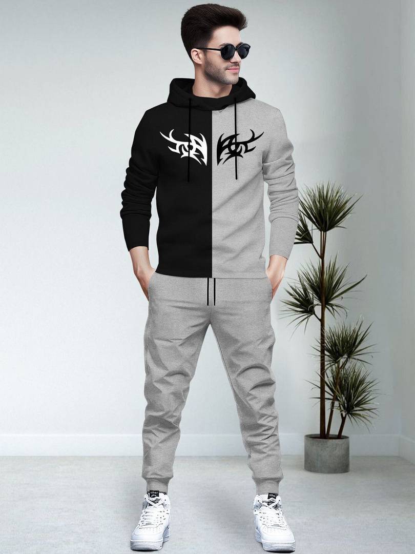 Elevate your street style and comfort with this striking Two-Tone Printed Tracksuit. Designed for the modern man, this set features a unique, split-color hoodie paired with comfortable Jogger, making it the perfect Cotton blend of edgy aesthetics and relaxed wearability. Whether you're hitting the gym, running errands, or just lounging, this tracksuit offers a bold look without compromising on comfort. Package Details : 1 Hooded Tshirt and 1 Jogger.