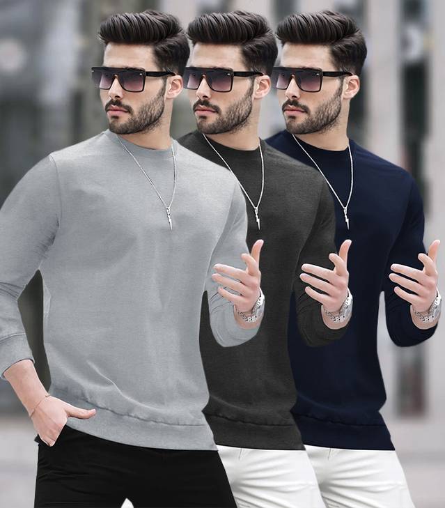 BLIVEΒ Pack of 3 Men Solid Round Neck Cotton Blend Multicolor T-Shirt