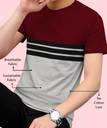 BLIVE Men Striped Round Neck Cotton Blend Maroon, Grey T-Shirt