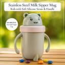 Attractive bear-shaped sipper that kids love., Made from BPA-free, non-toxic, and food-grade plastic., Prevents accidental spills and leakage., Dual side handles for little hands to hold comfortably.