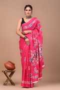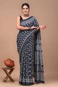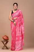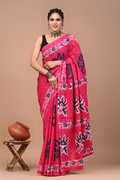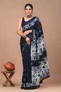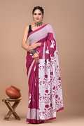 Hand Painted, Printed, Floral Print, Blocked Printed, Color Block Handloom Pure Cotton Saree